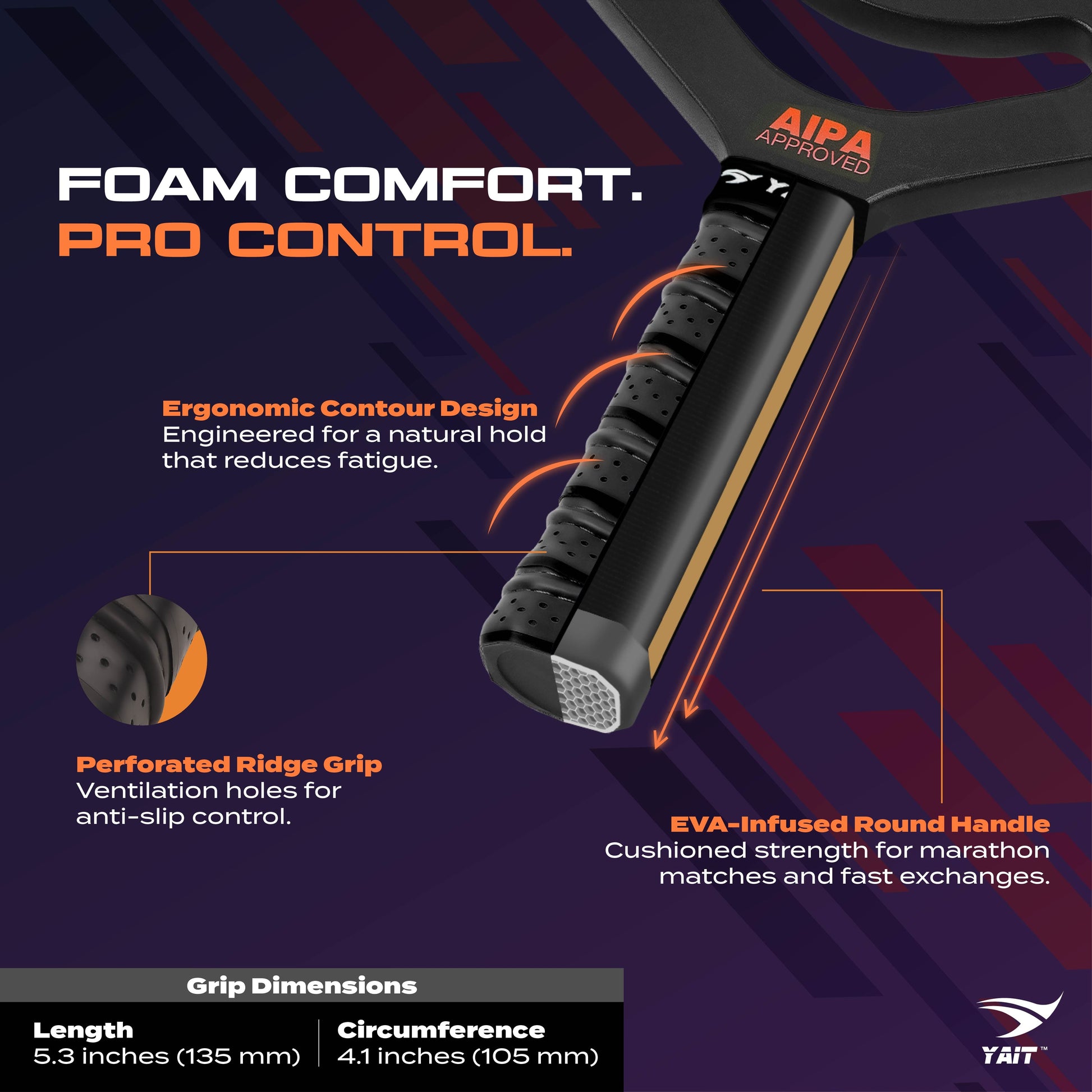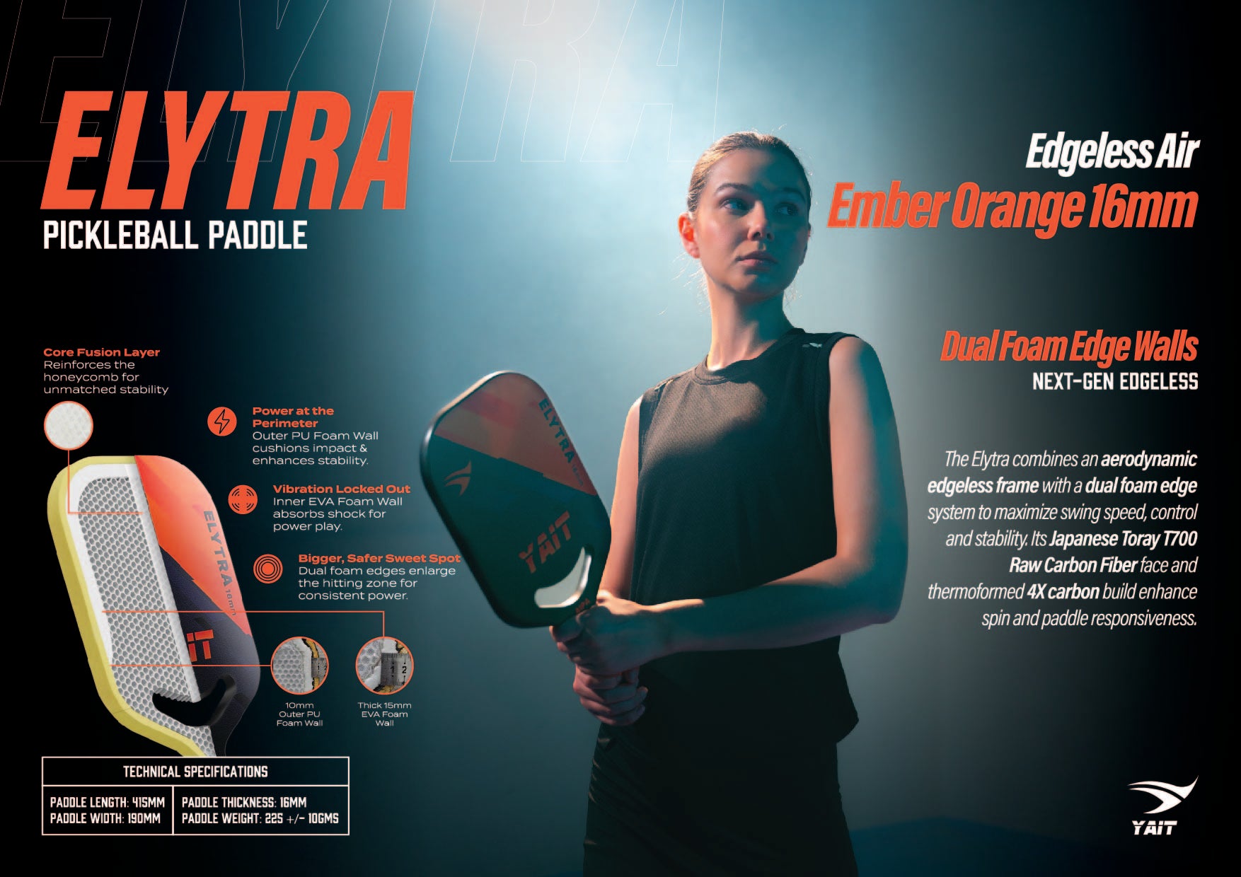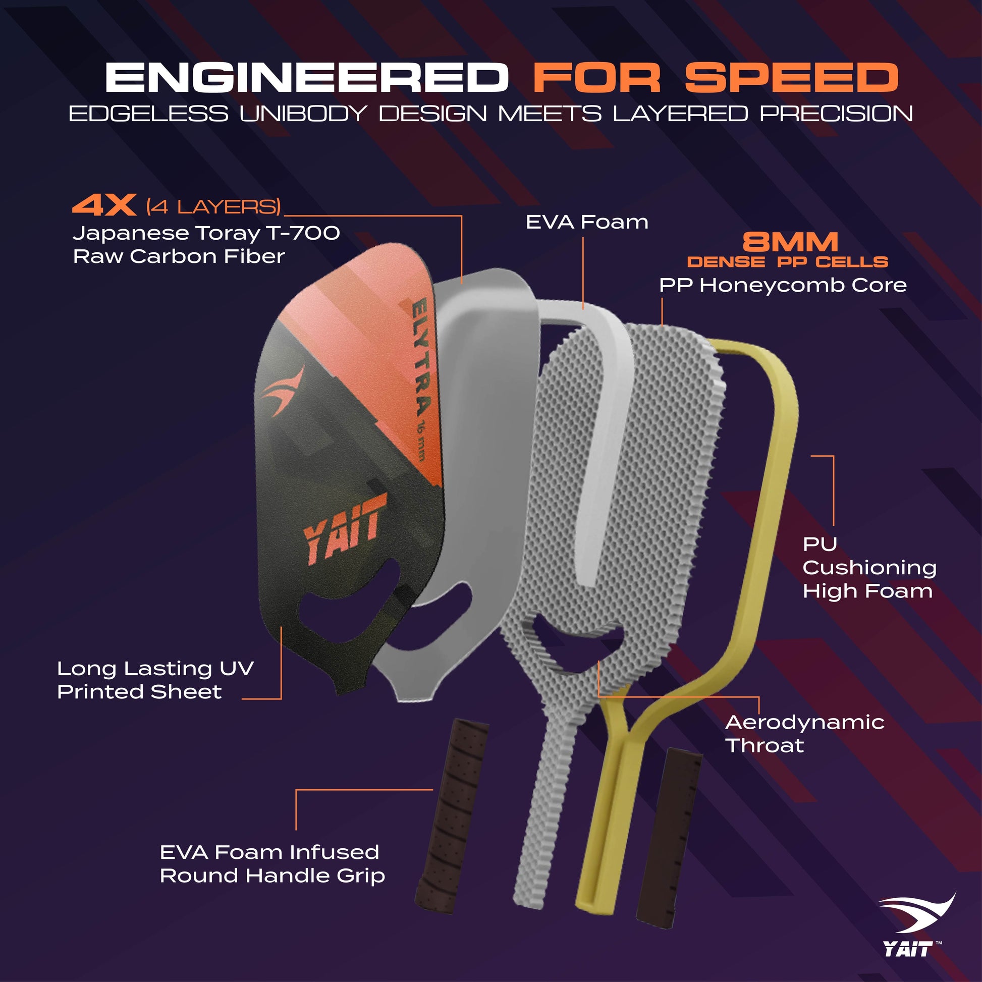 YAIT Sports Elytra Pickleball Paddle | Thermoformed 16mm Edgeless Racket | 4 Layers - Japanese Toray T700 Carbon | Lightweight Racket with Foam Walls | AIPA Approved | Pickleball Cover Bag Included