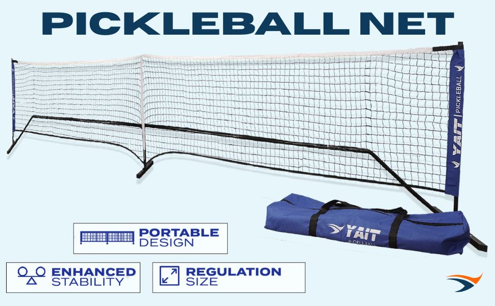 YAIT Sports Pickleball Net | 22 feet length | Premium Knotless PE Net | Durable Anti-Rust Frame | All-Weather Design | Easy to assemble Pickleball Net with Carry Bag for Indoor and Outdoor Use