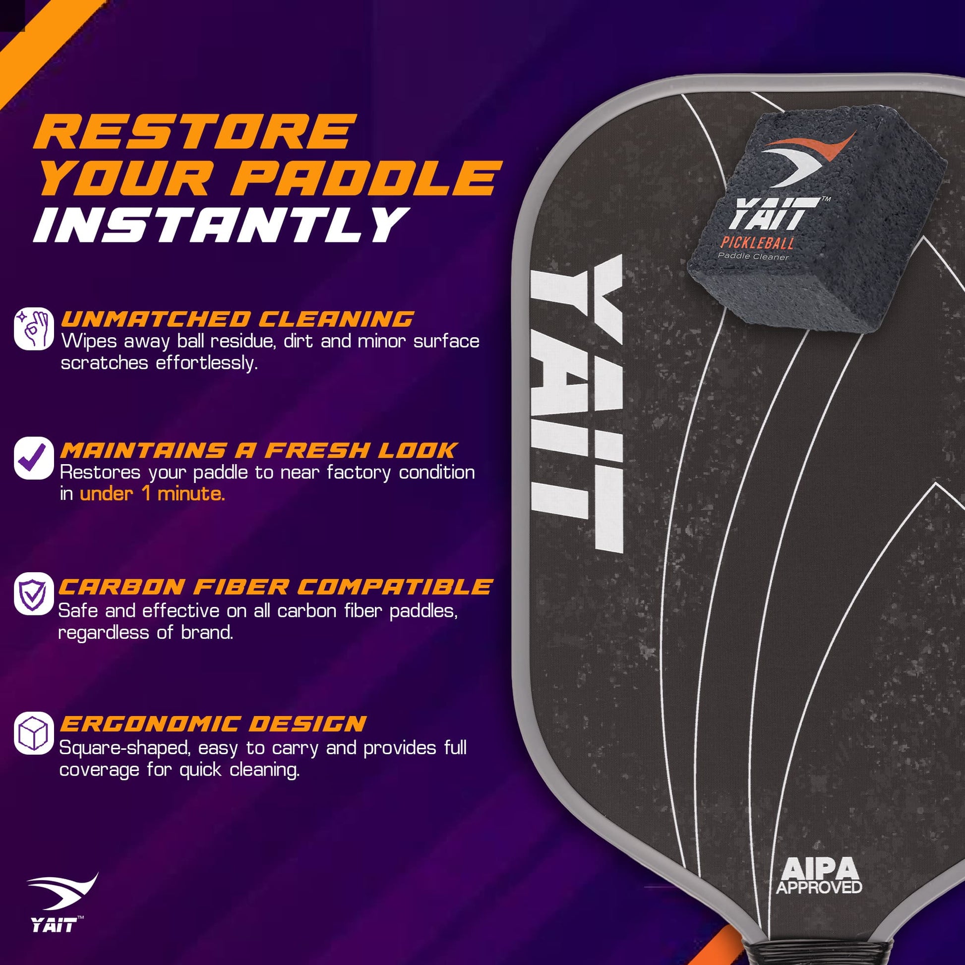 YAIT Sports Pickleball Paddle Rubber Eraser | Cleans and removes Dirt & Residue from Carbon Fiber Paddles | Restores Grit & Spin in 1 Minute | Compact & Portable Rubber Cleaner