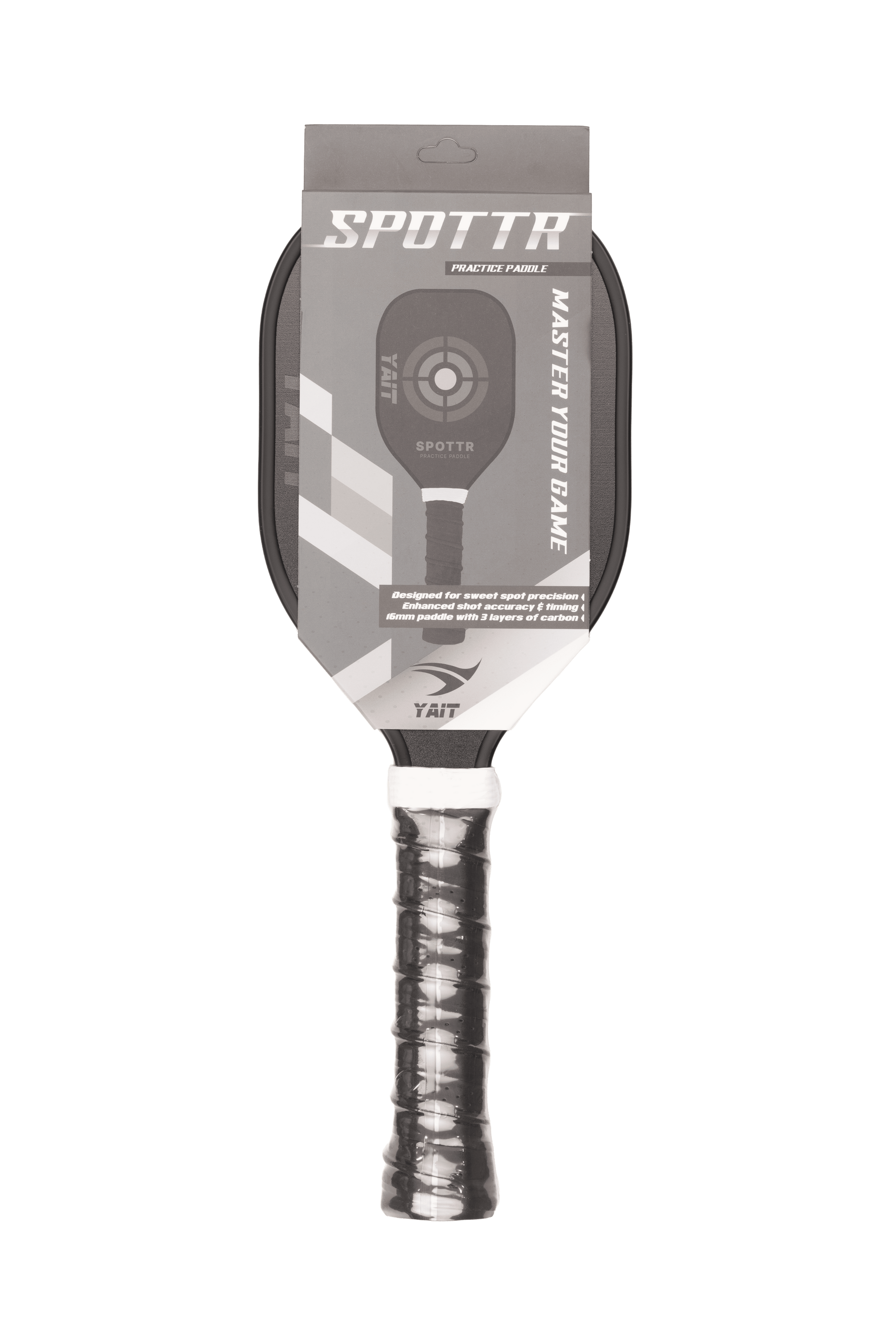 Sharpen your precision and elevate your performance with the YAIT Spottr Sweet Spot Trainer Paddle – the ultimate training tool to improve consistency, accuracy, and paddle control. Engineered for targeted practice, this paddle features a reduced face size that mirrors the sweet spot of regulation paddles, helping you build muscle memory for clean contact and optimal shot placement.