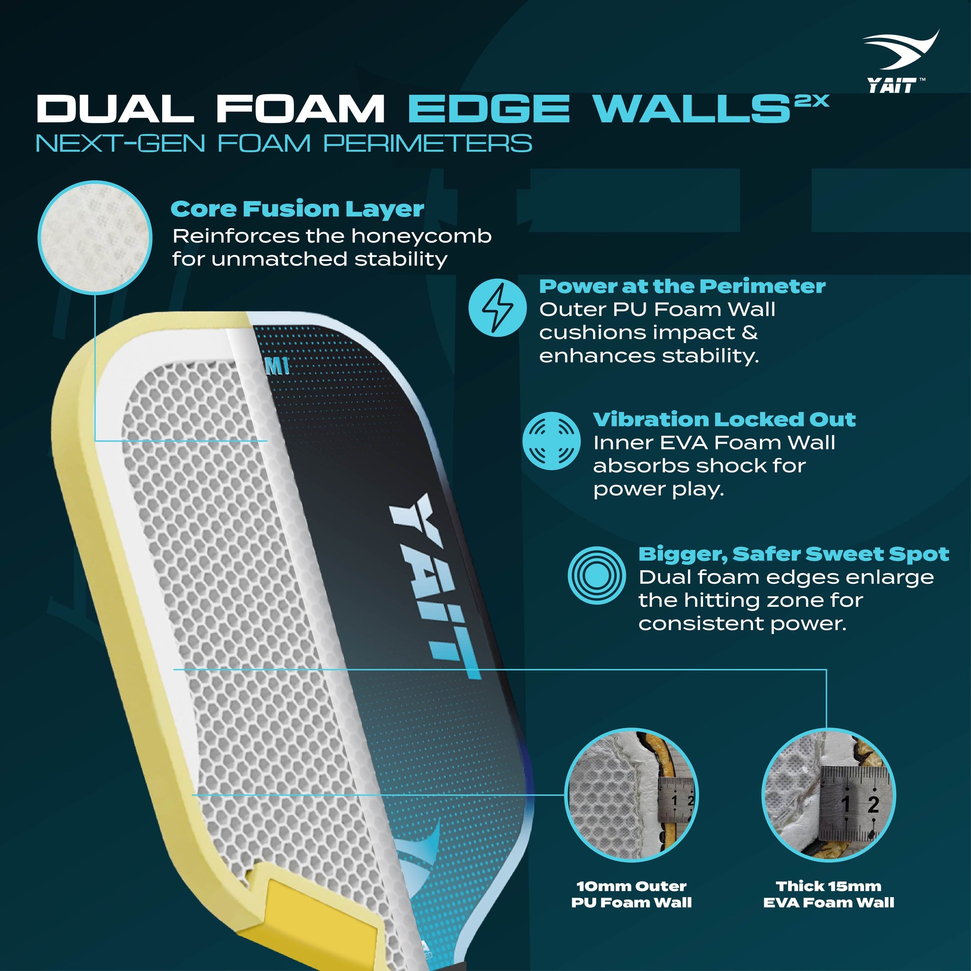 VA Core Tech pairs a thick 16mm polypropylene honeycomb core with foam edge walls to dramatically reduce impact shock and deliver a controlled feel. - WAVE-CONTOURED ROUND GRIP: